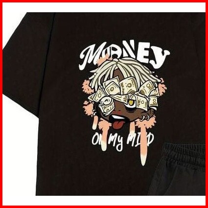 Stelan Baju Dan Celana Pendek Santai Pria Motif Money On My Mind Boxer Katun Flecee Kaos Oblong Atasan