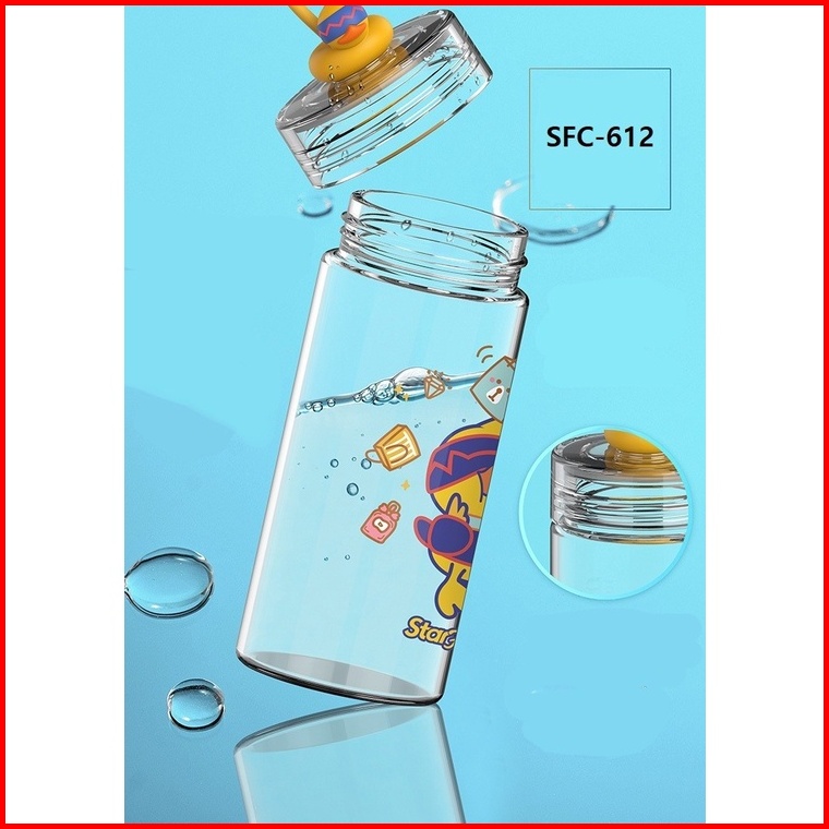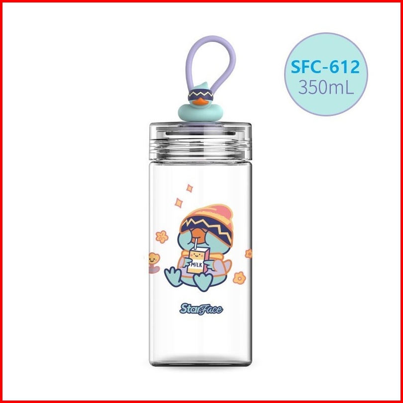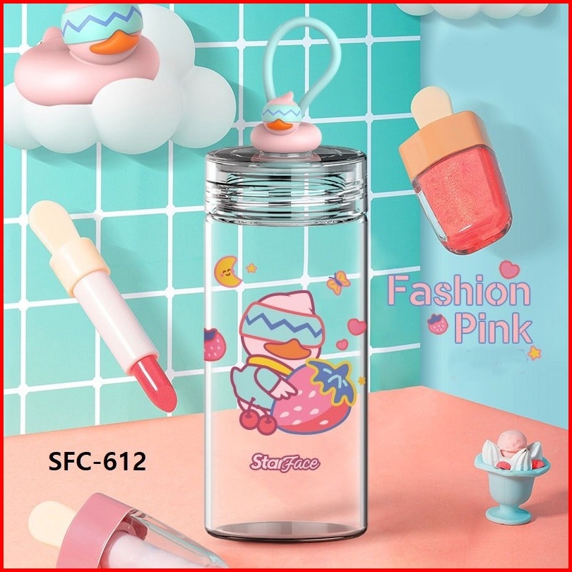 Tarsla Botol Minum Kaca Anak Sfc-612 Karakter Swimduck 350 Ml - Anti Tumpah - Merah Muda