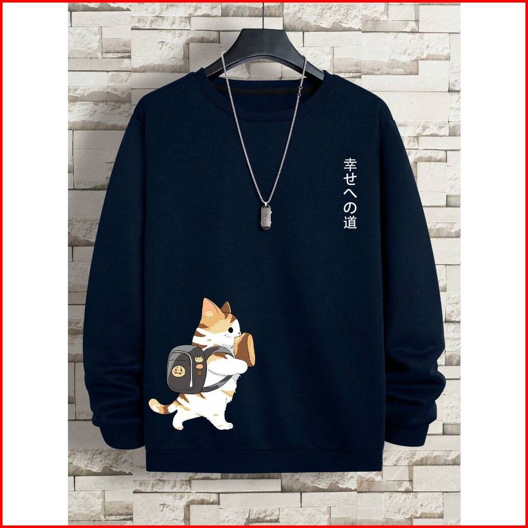 Sweater Crewneck Motif Neko Japanese Text Terbaru Size M-xxl Sweatshirt