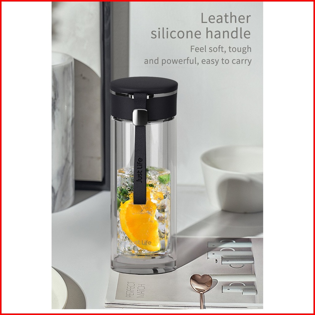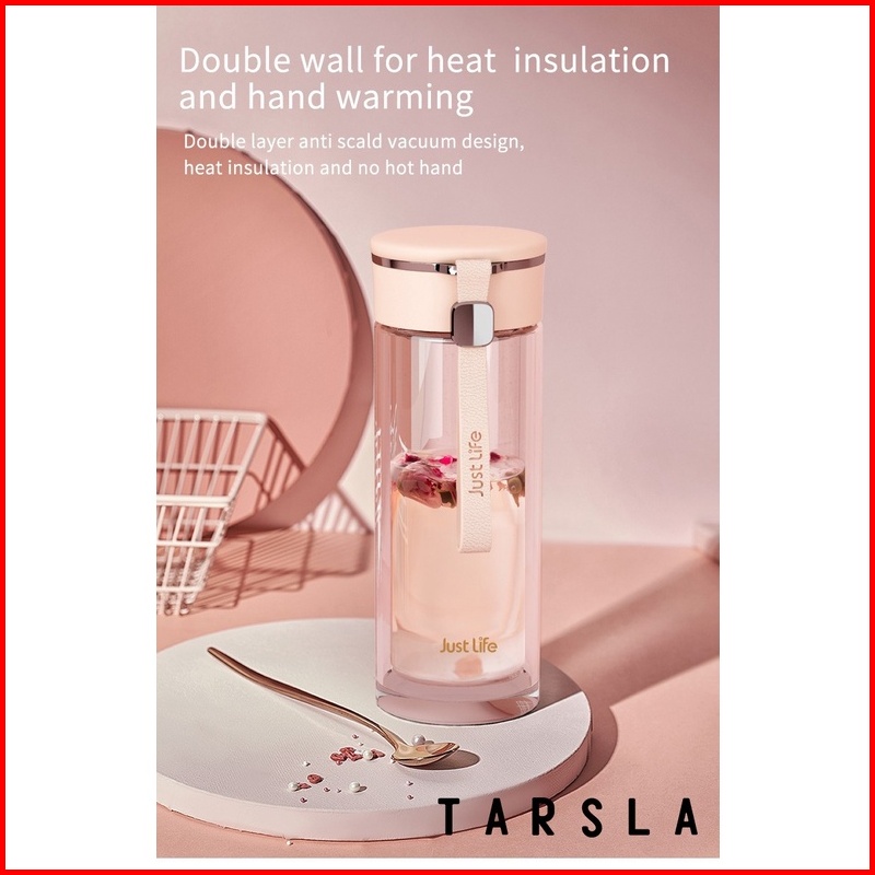 Tarsla Botol Kaca J-163 Double Wall Include Saringan Teh High Borosilicate Glass Premium Tutup Kuat 290 Ml