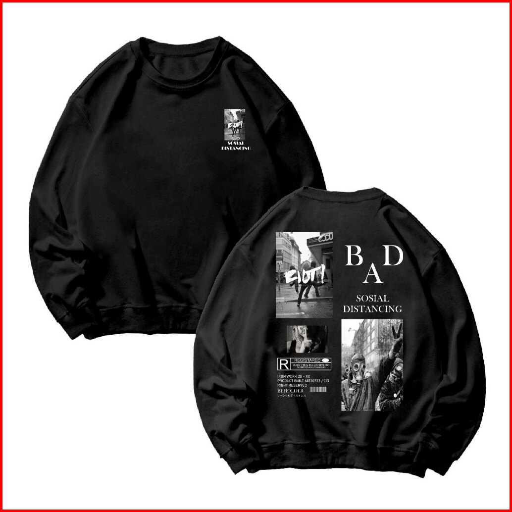 Basic Sweater Crewneck Long Sleeve Bad Sosial Distancing Size M-xxl Pria Wanita