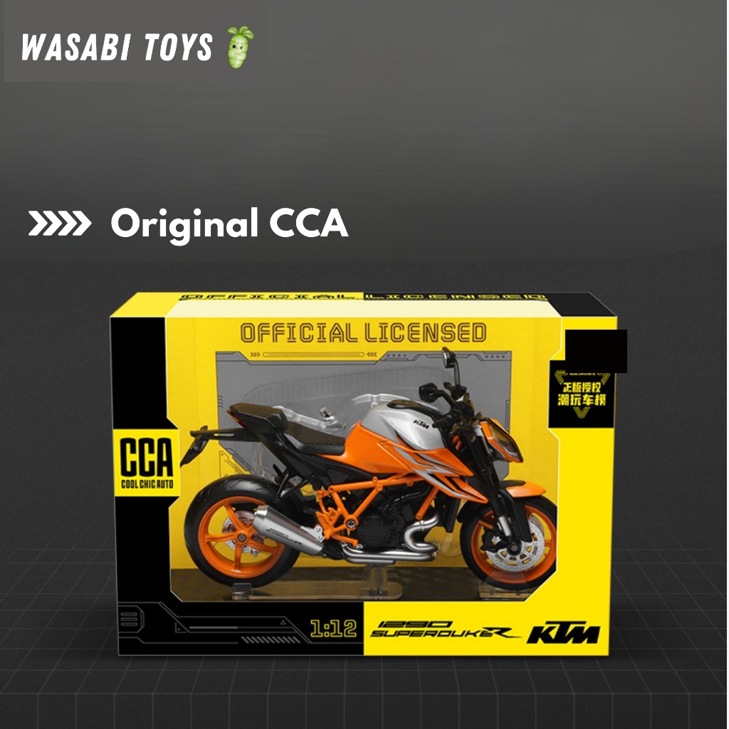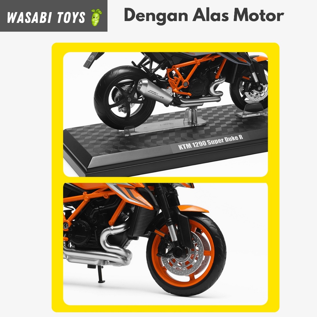Diecast 1:12 KTM 1290 Super Duke R Miniatur Motor (Dengan Alas Motor, Suspensi, Tanki Logam)