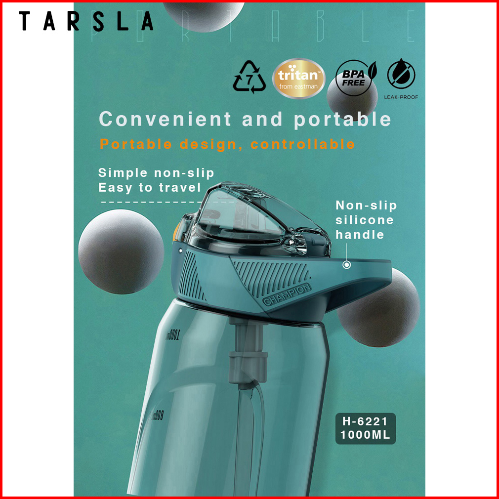 Tarsla Botol Minum H-6221 Sport Plastik Tritan With Handle And Straw 1000ml
