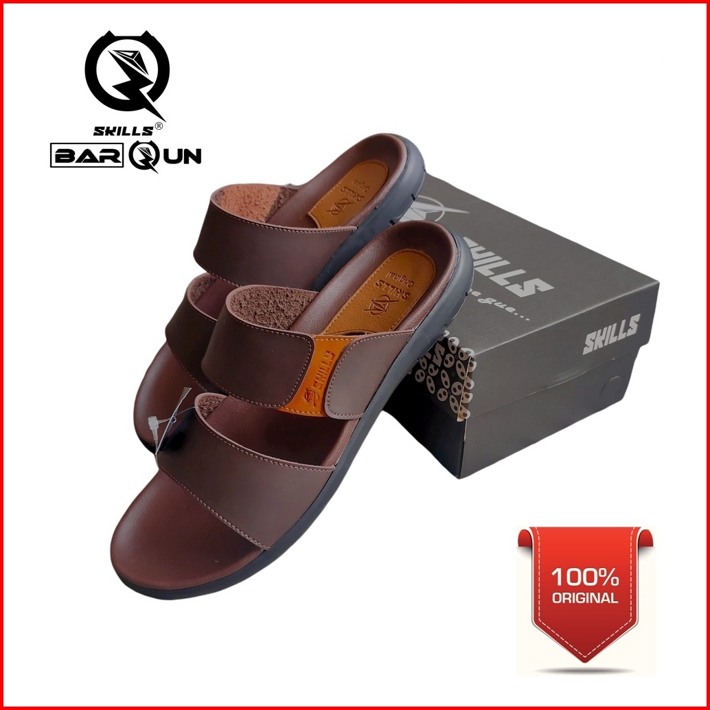 Skills Barqun Sendal Sliper Pria Kulit Bukan Kickers Slop 100 Ori