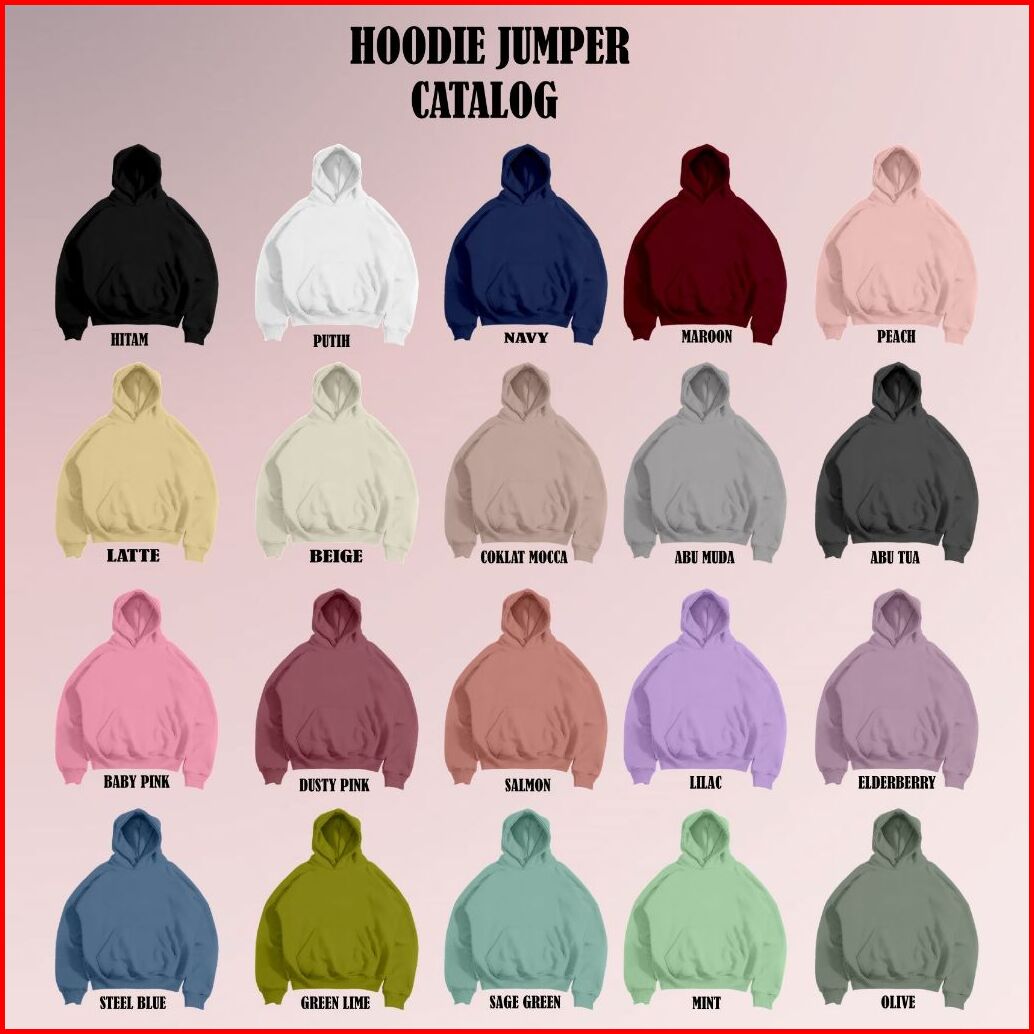 HITAM, PUTIH, PEACH, STEEL BLUE, ABU MUDA, NAVY, COKLAT MOCCA, SAGE GREEN, LATTE, BEIGE, BABY PINK, WARNA LAIN DI NOTE