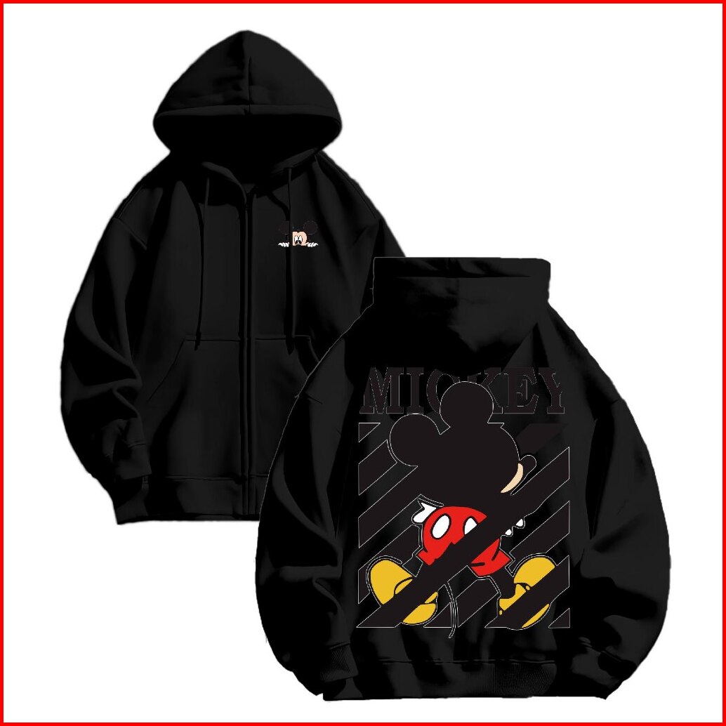 Bunz Hoodie Zipper Jaket Mickey Sablon Dtf Size M-xxl Pria Wanita