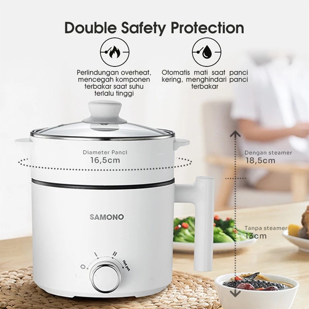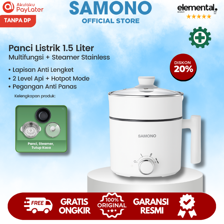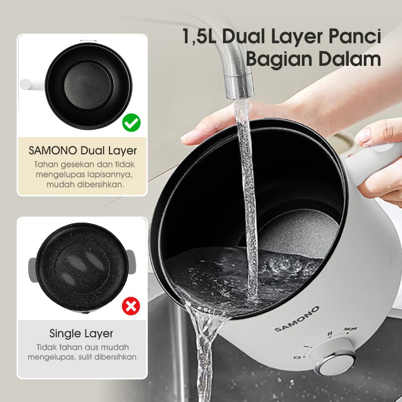 𝐏𝐑𝐎𝐌𝐎 Samono Panci Listrik 1.5 Liter Anti Lengket Multifungsi Serbaguna Jumbo Termurah Low Watt DG04S Best Seller