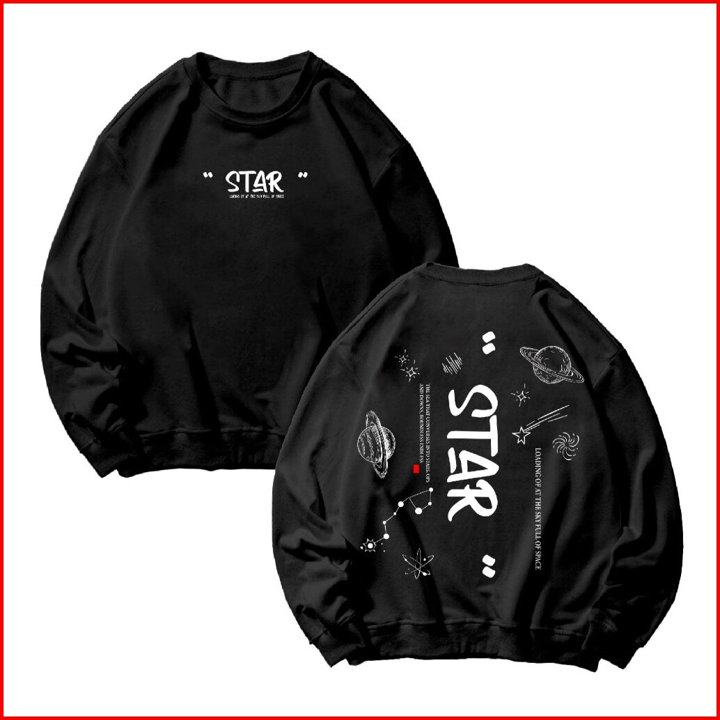 Basic Sweater Crewneck Long Sleeve Star Size M-xxl Pria Wanita