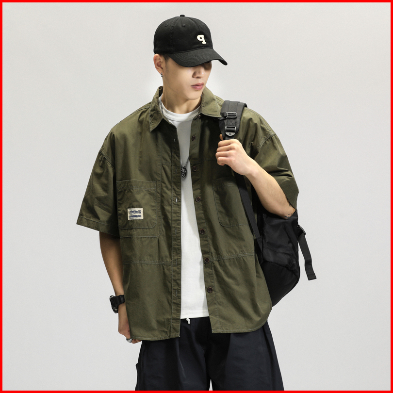 Kemeja Pria Lengan Pendek Kemeja Polos Longgar T Shirt Kemeja Vintage Standar Kasual Pria Korean Style Kemeja Oversize P
