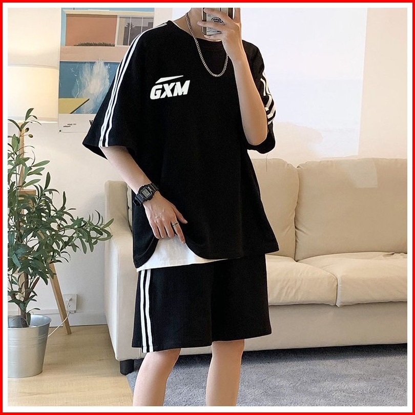 Setelan Pria Satu Set Fashion Outfit Pria 1 Set Lengkap Keren Baju Setelan Pria Kaos Oversize Pria Kaos Hitam Baju Satu