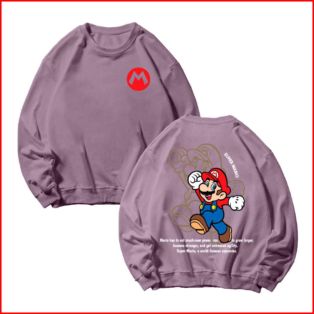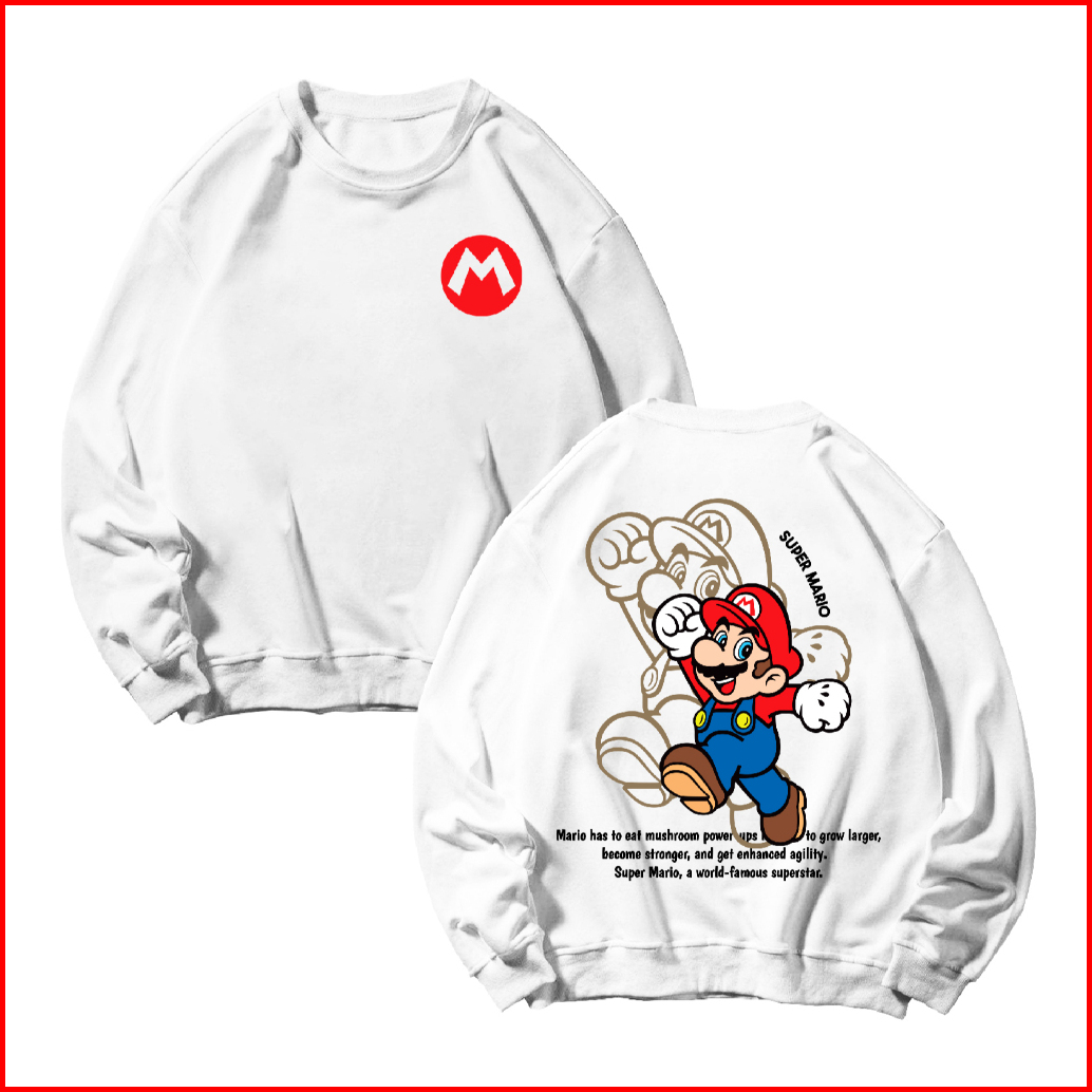 Bunz Basic Sweater Crewneck Long Sleeve Mario Superstar Size M-xxl Pria Wanita