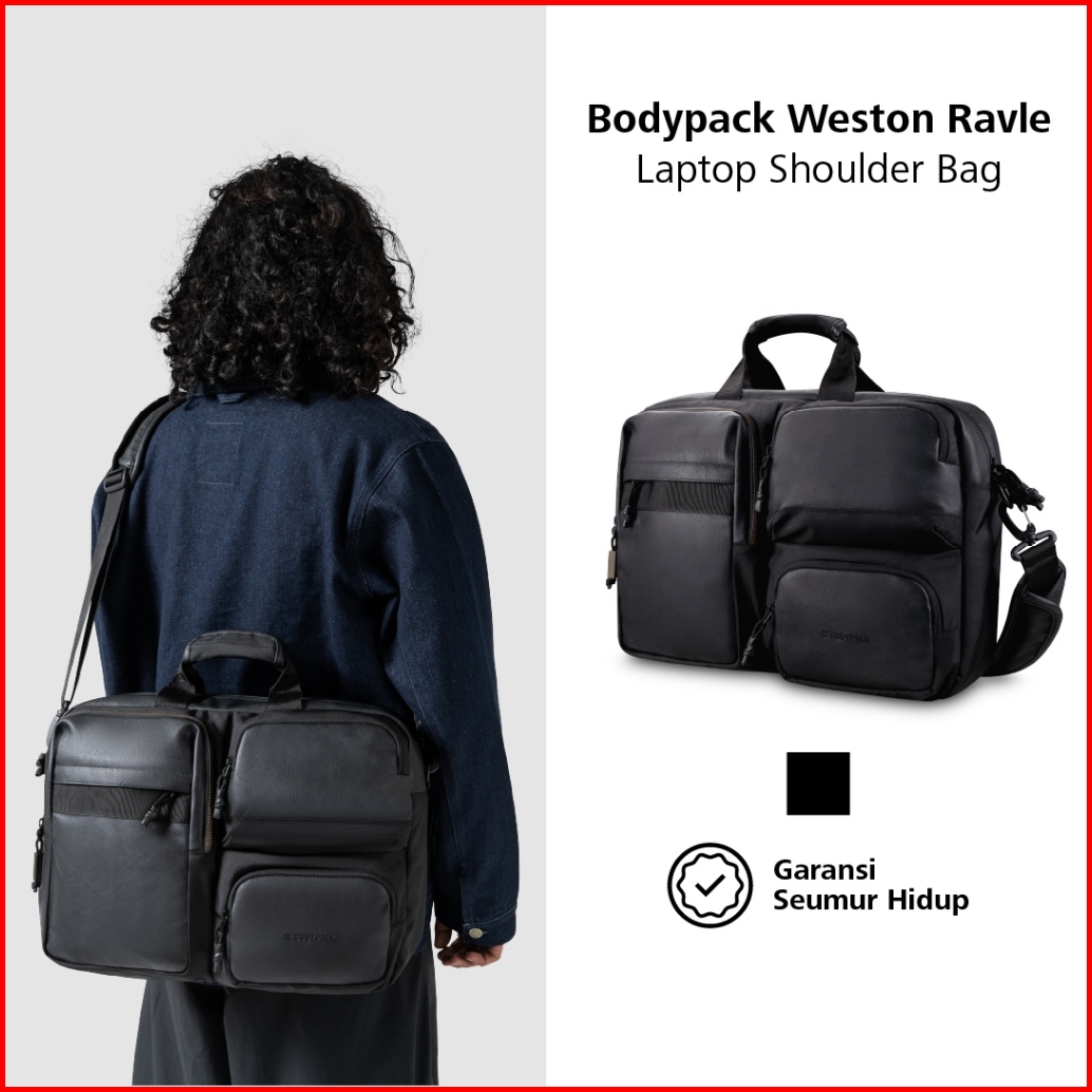 Bodypack Weston Ravle Laptop Shoulder Bag 15-inch Tas Selempang Kerja Kuliah Sekolah Classic - Hitam