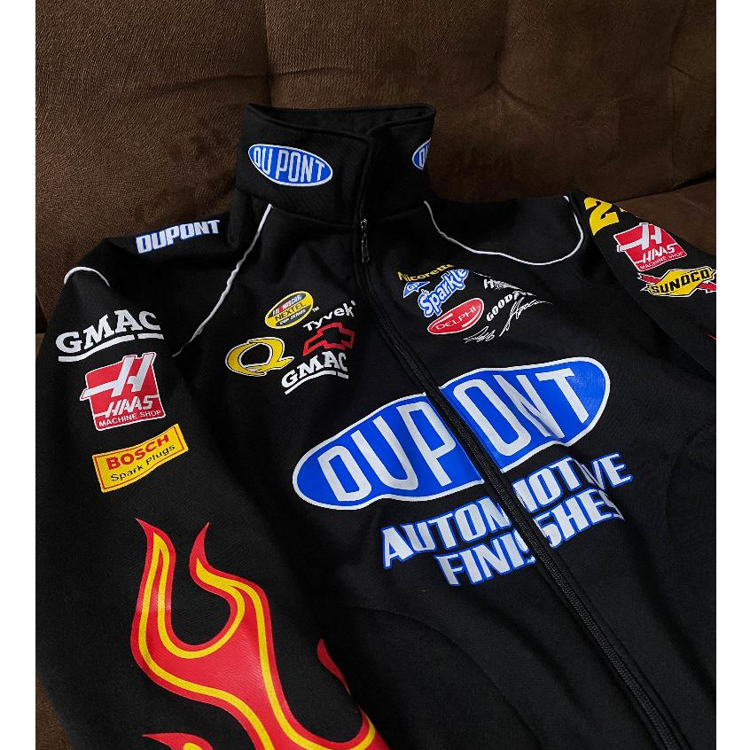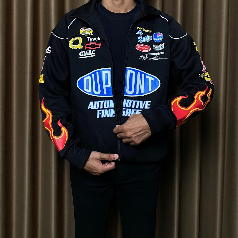Jaket Nascar Racing DuPoonndt Vintage Jaket Ridding Racing Black Fire Jaket Sunmori Ziper