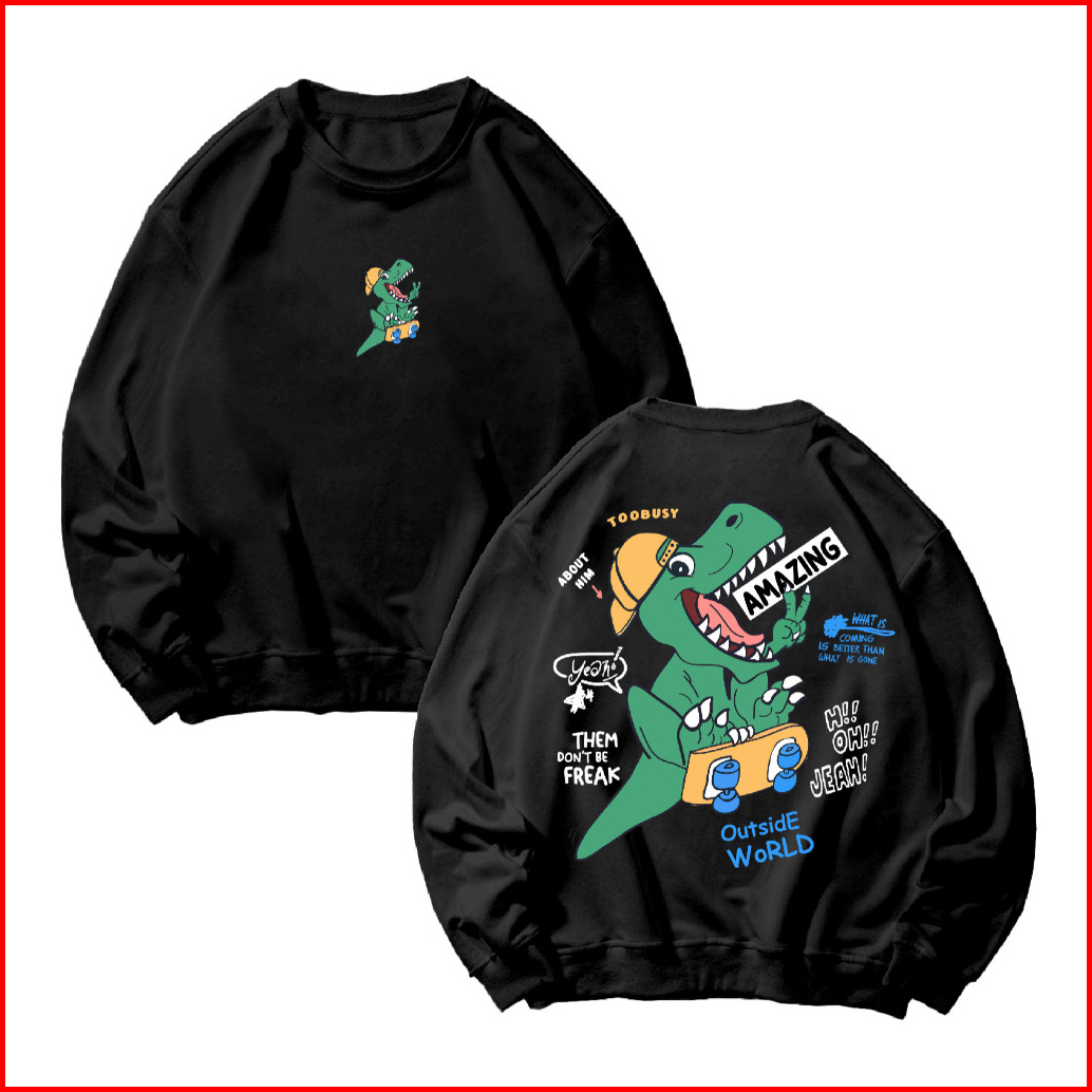 Bunz Basic Sweater Crewneck Long Sleeve Brave Dino Size M-xxl Pria Wanita