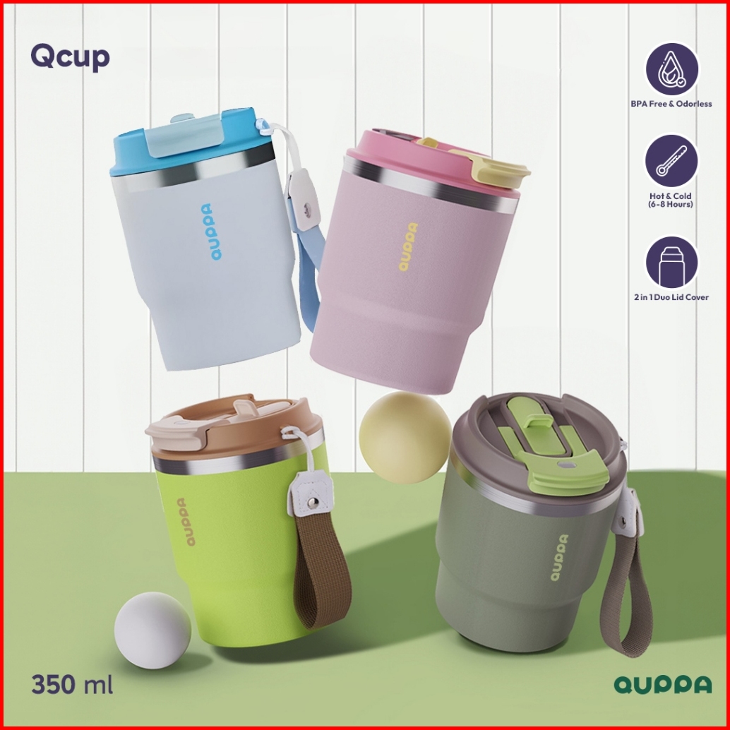 Quppa Tumbler Stainless Steel Kopi Multifungsi Dengan Insulasi Ganda Tahan Panas Dingin Berkapasitas 350ml