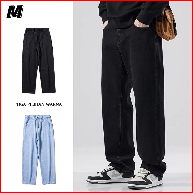 Celana Jens Pria Celana Jeans Gombrong Pria Celana Panjang Pria Jeans Standar Straight Kulot Kekinian Celana Cowok Gaya