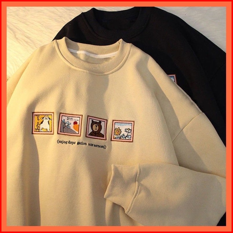 Bunz Basic Sweater Crewneck Enjog Dops Sablon Size M-xxl Pria Wanita