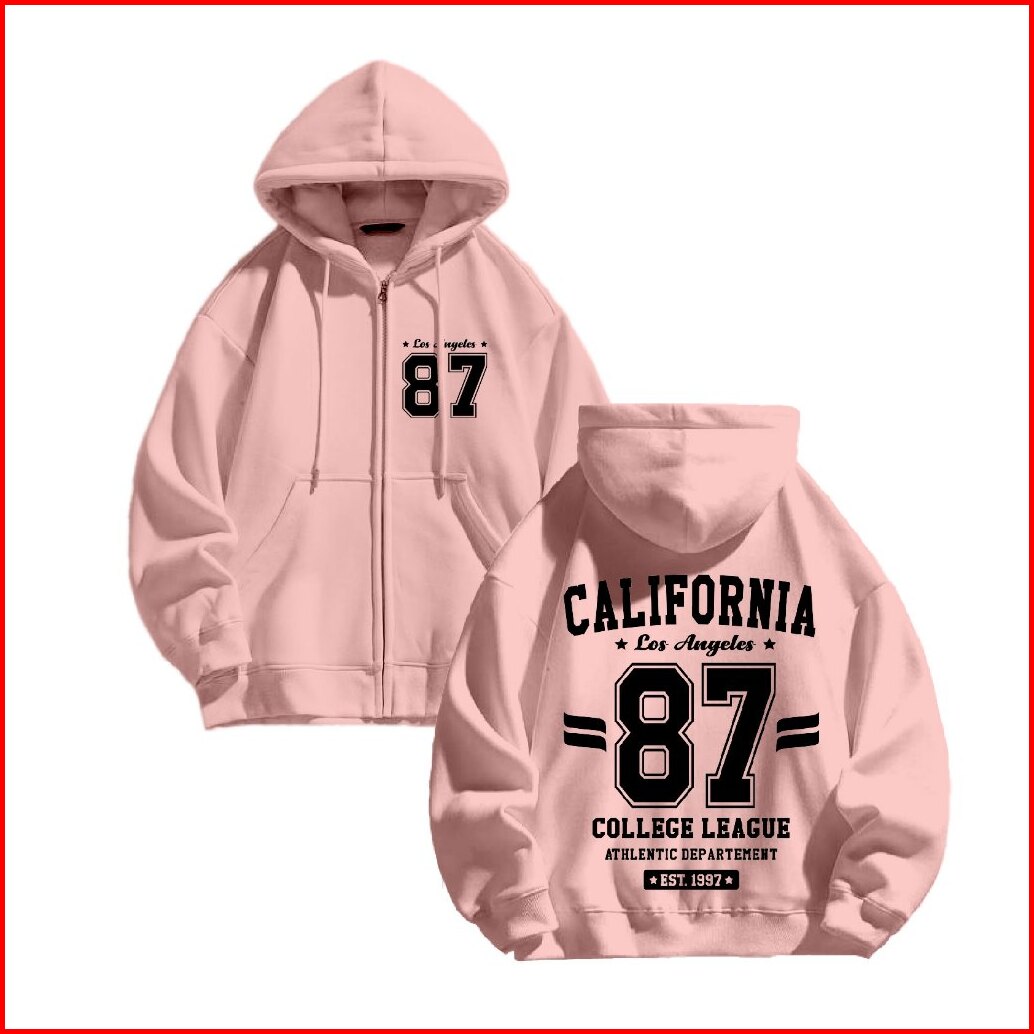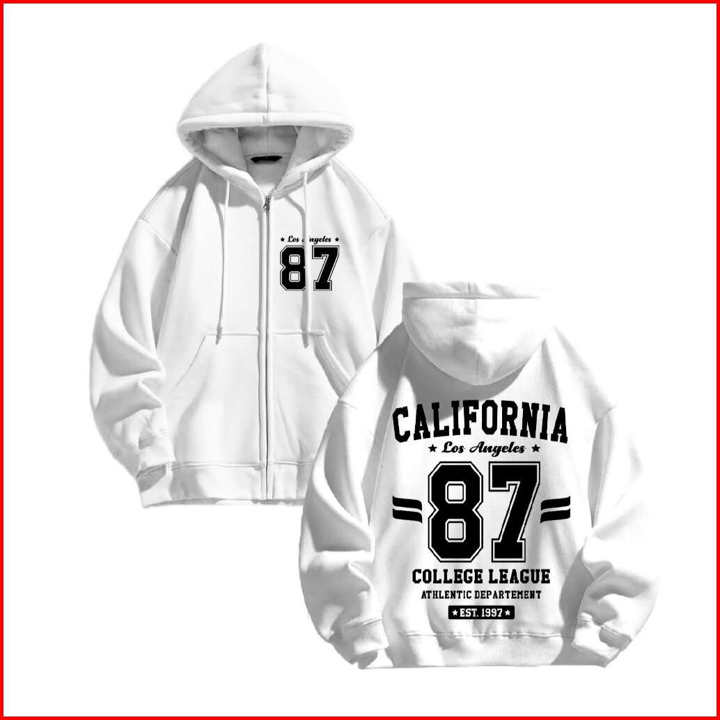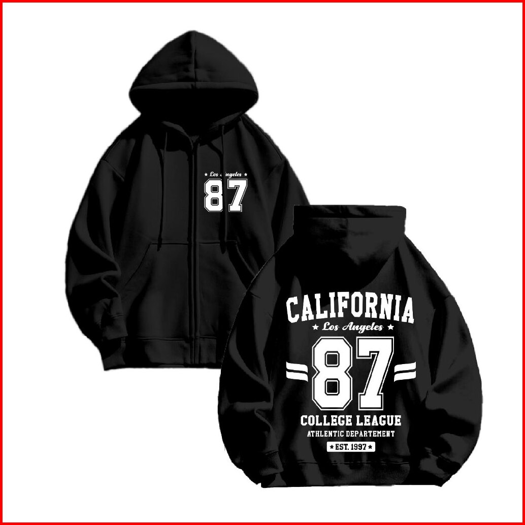 Bunz Hoodie Zipper Jaket California 87 Sablon Dtf Size M-xxl Pria Wanita