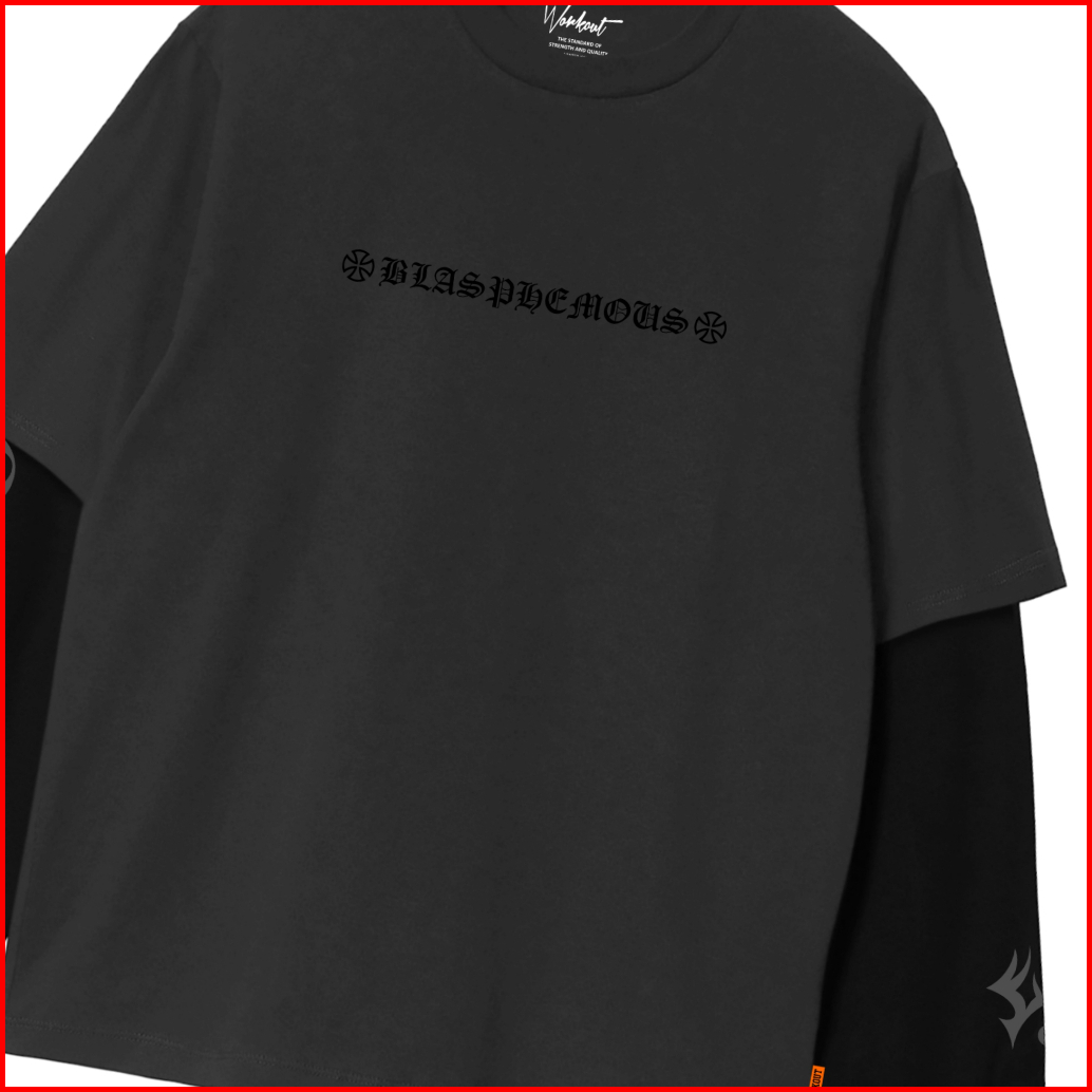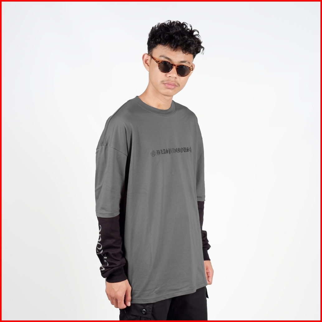Workout Streetwear Kaos Lengan Panjang Longsleeve Oversize Dobel Layer Blaspheme
