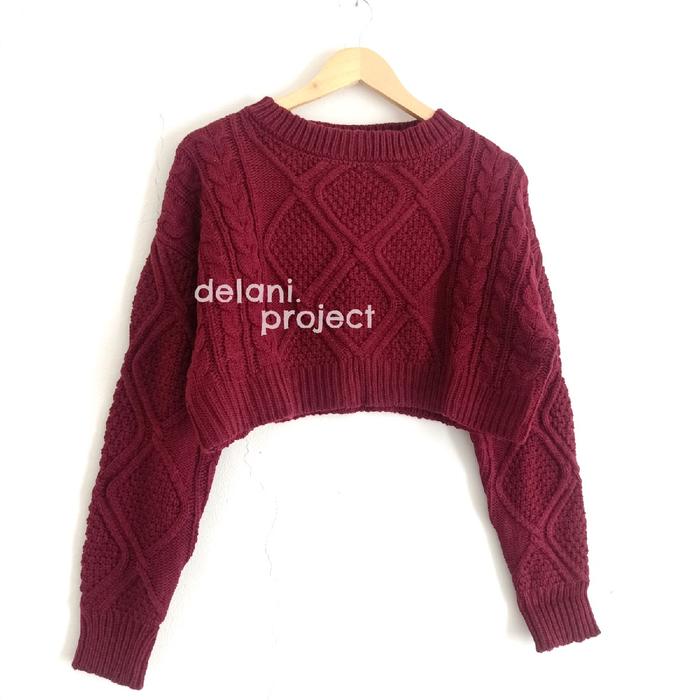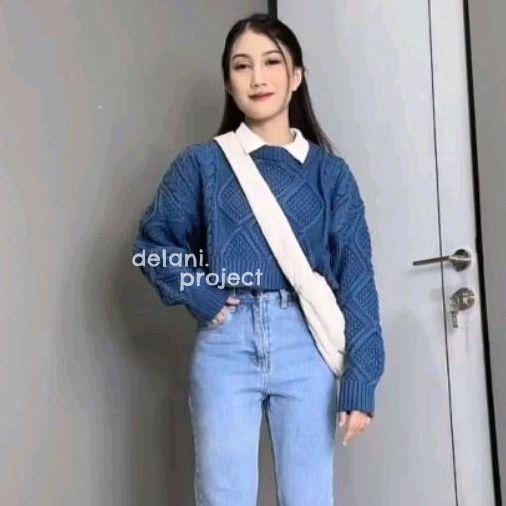 DELANI.PROJECT - SANDIEGO CROP SWEATER 35 CMKNIT CABLRR44E MOTIF KNITWEAR - NILA