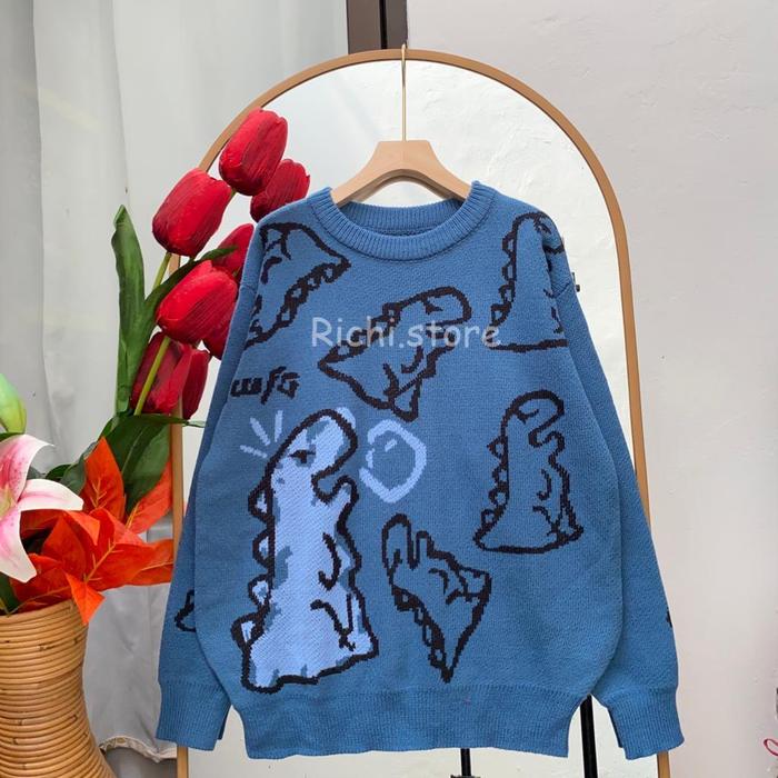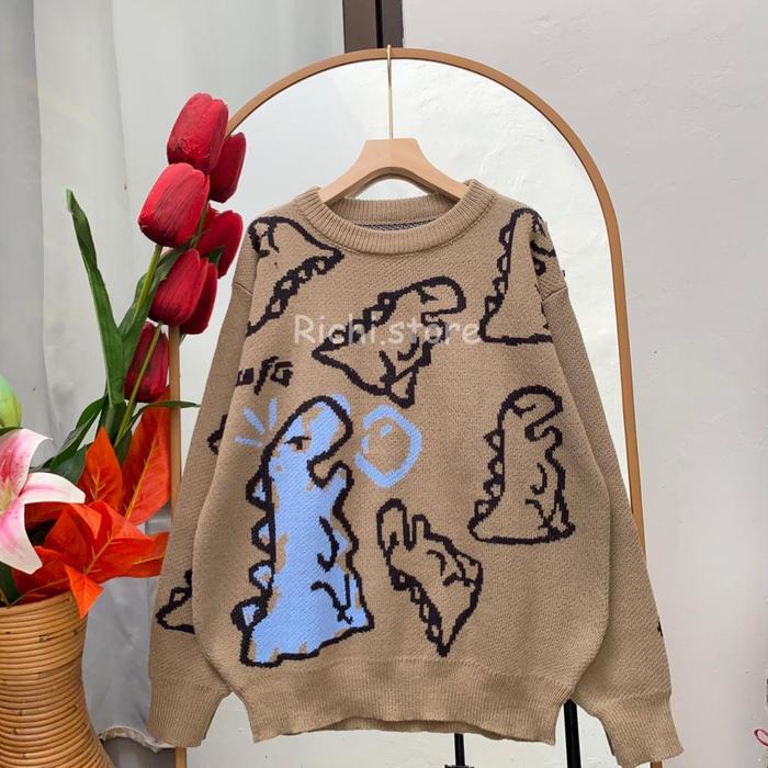 DINO OVERSIZE SWEATER RAJUT UNISEX BAJU FIT NYAMAN MOTIF TEBAL WANITA - AVOCADO DINO