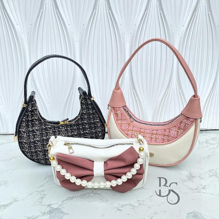 PAKET HEMAT BUNDLING 3 PCS TAS SELEMPANG WANITA MOON VITA SOVIA CEWEK KEKINIAN DAPAT 3 PCS - HITAM SEMUA