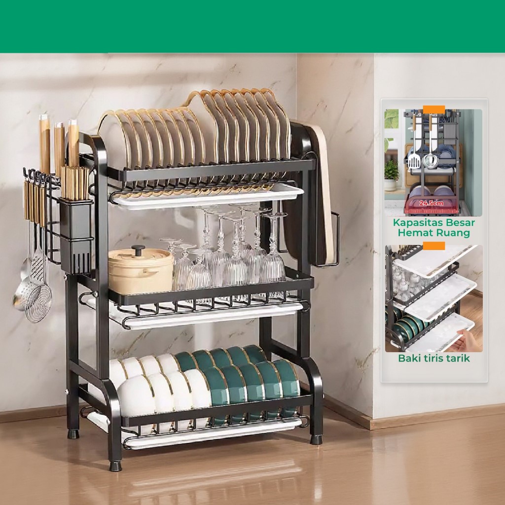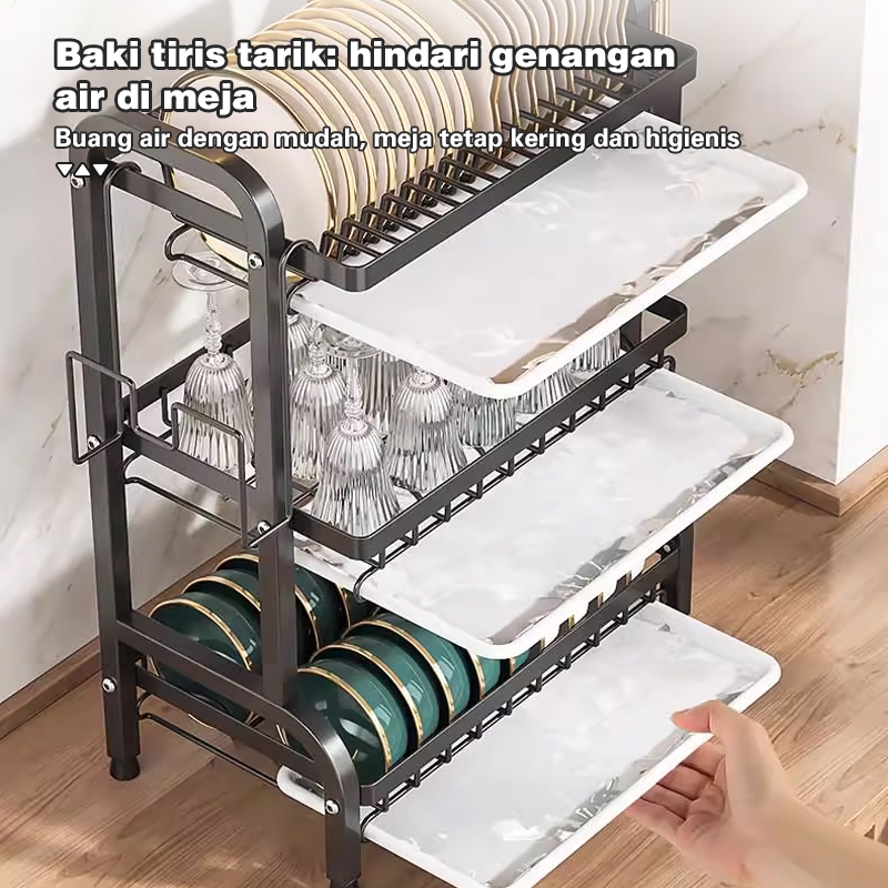 Rak Piring Dapur Penyimpanan Rak Pengering Piring Rak Piring dan Mangkuk keramik alumunium 3 pintu besi dinding terlaris
