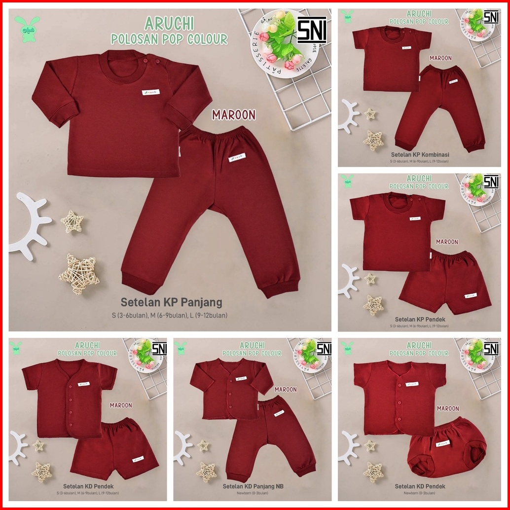 Aruchi 1pcs Setelan Maroon Terbaru Panjang Pendek Kombinasi Oblong Kancing Pundak Kancing Depan