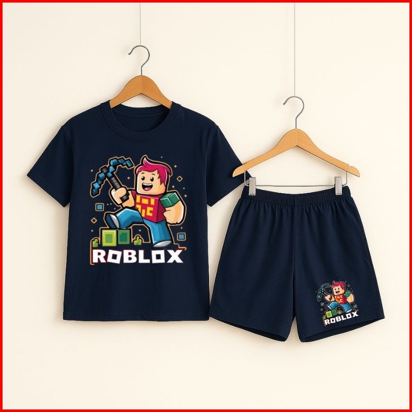 Dealshop Setelan Baju Dan Celana Pendek Anak Perempuan Laki Laki Usia 2 Sampai 11 Tahun Motif Roblox Bahan Kaos Roblox P