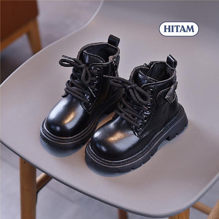 Lapago Free Box 21-30 Sepatu Boots Kulit Fashion Anak Perempuan Usia 1 - 5 Tahun Mlc - Hitam, 21