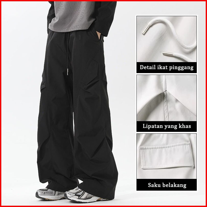 Celana Cargo Panjang Pria Korean Style Celana Kargo Loose Pants Celana Panjang Lurus Celana Polos Pria Celana Longgar Pr
