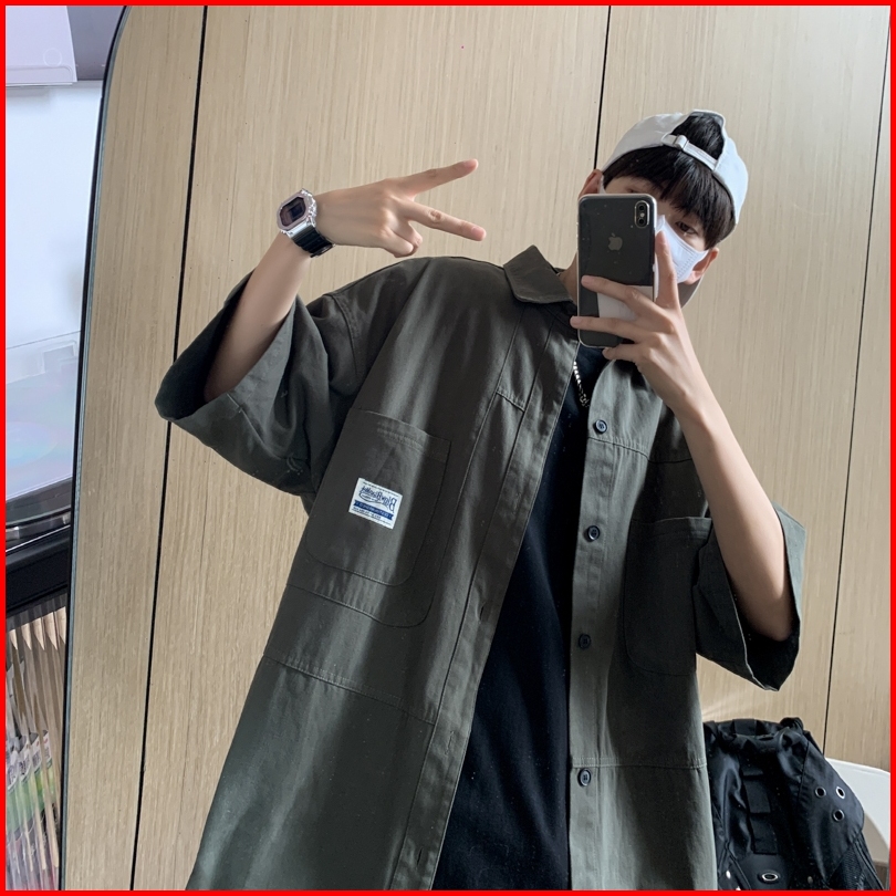 Kemeja Kasual Pria Kemeja Polos Pria Kemeja Atasan Baju Kaos Lengan Pendek Pria Korean Style Gamis Santai Kekinian Baju