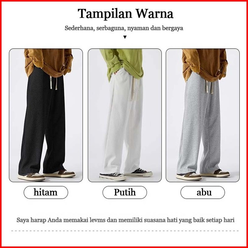 Celana Panjang Polos Pria Celana Kasual Korea Style Celana Panjang Pria Celana Kulot Loose Pants Straight Hitam Celana A