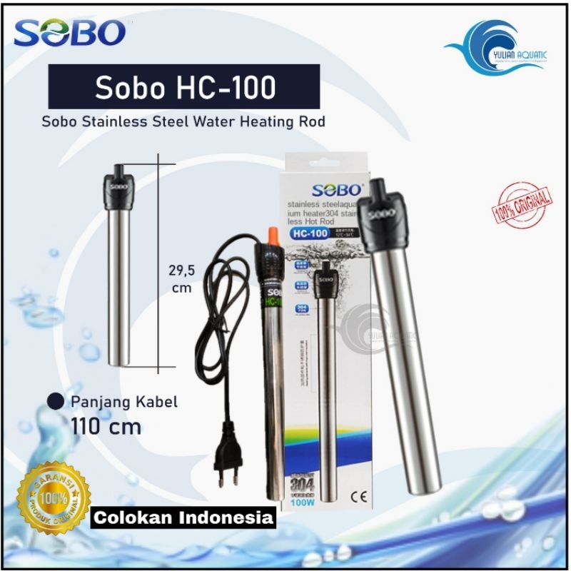 FLASH SALE Stainless Steel Heater Sobo 100 watt Colokan Indonesia Pemanas Air Aquarium Ori