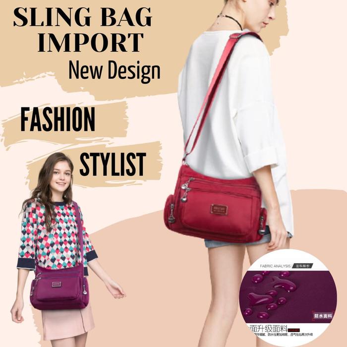 TAS SELEMPANG NILON WATERPROOF WANITA SLEMPANG KOREA SLING BAG NYLON IMPORT SELENDANG MURAH TERBARU NY077 - NAVY