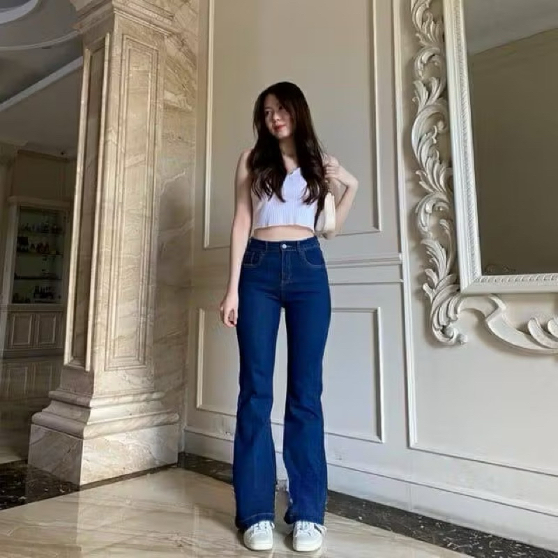 Celana Highwaist Cutbray Jeans Wanita-Celana Panjang Denim Cutbray Melar Nyaman
