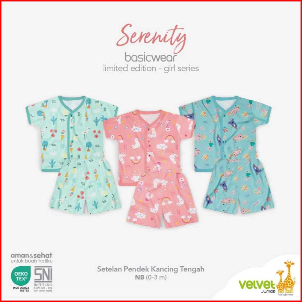 Velvet Junior 3pcs Setelan Pendek Celana Pendek Kancing Depan Motif Terbaru