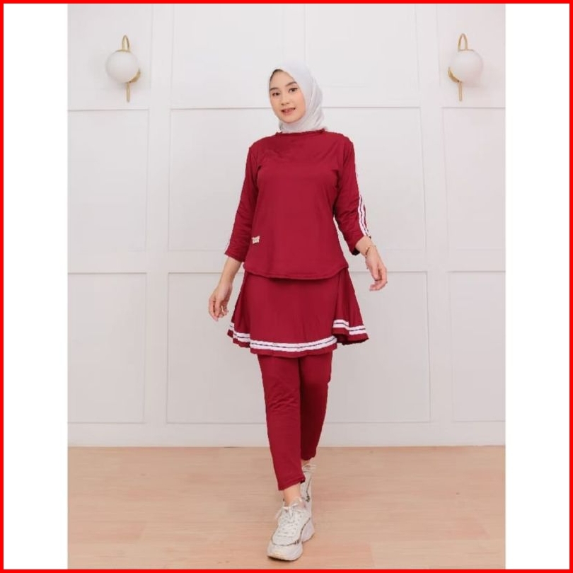 Setelan Baju Olahraga Perempuan Terbaru Leging Rok Sport Badminton Senam Lari Renang Bersepeda Zumba