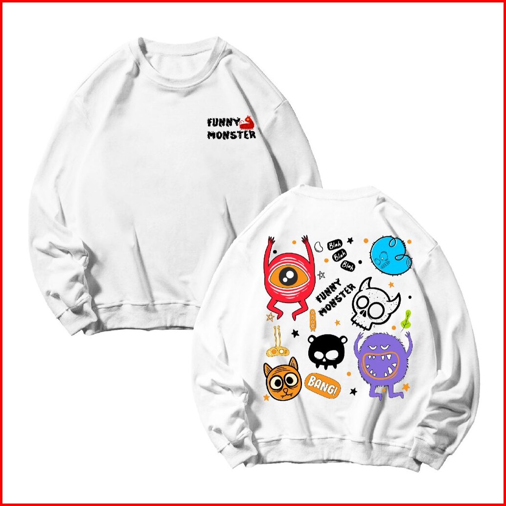 Bunz Basic Sweater Crewneck Long Sleeve Funny Monster Size M-xxl Pria Wanita