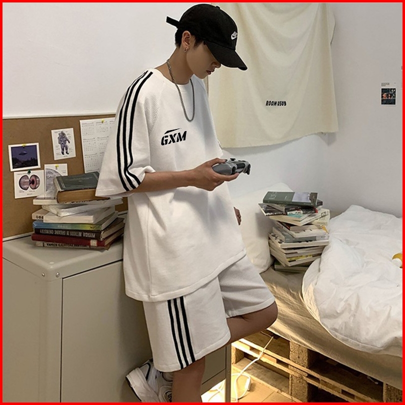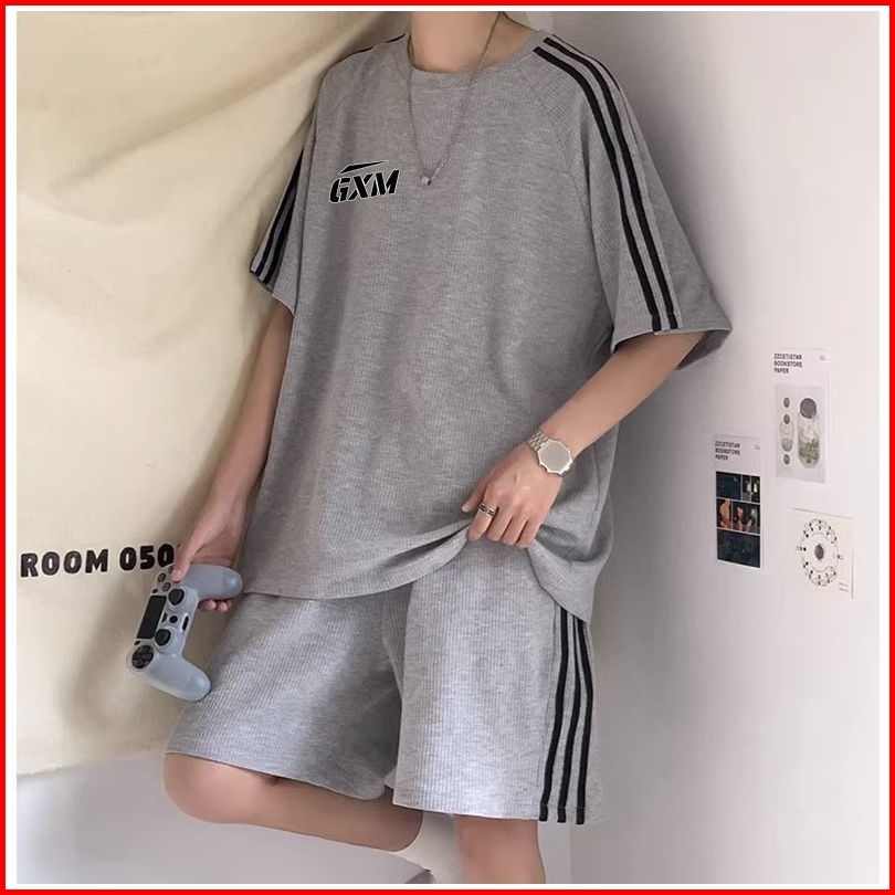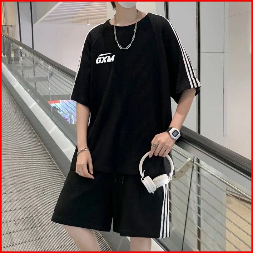 Setelan T-shirt Satu Sett-shirt Dan Celana Hitam Abu Abu T-shirt Pria Dan Wanita Kaos Import T-shirt Kasual Berkualitas