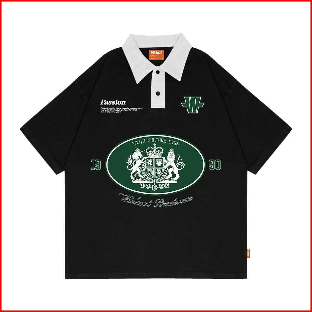 Workout Streetwear Kaos Oversize Vintage Short Rugby Polo Shirt - Lion Club Black