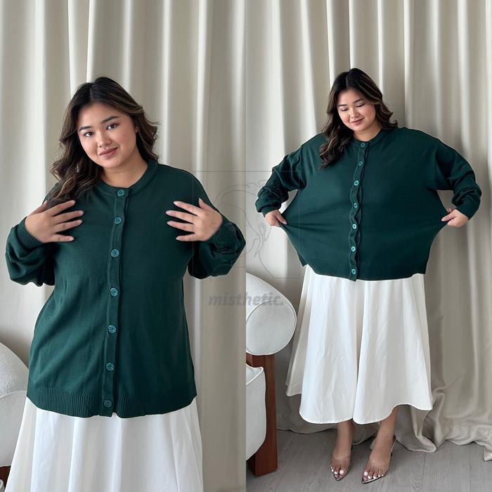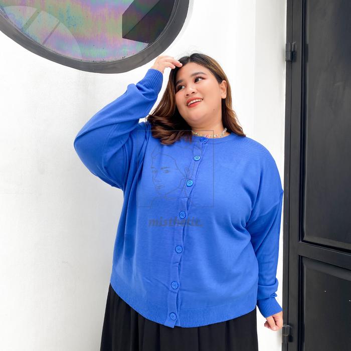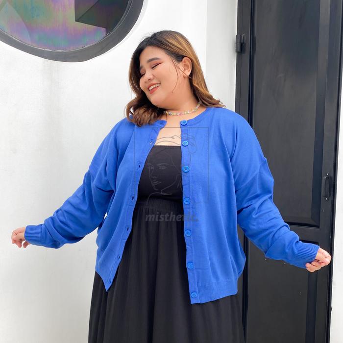LADY CARDIGAN — CARDIGAN RAJUT POLOS BIG SIZE LD 110/130/150 - BLACK, L