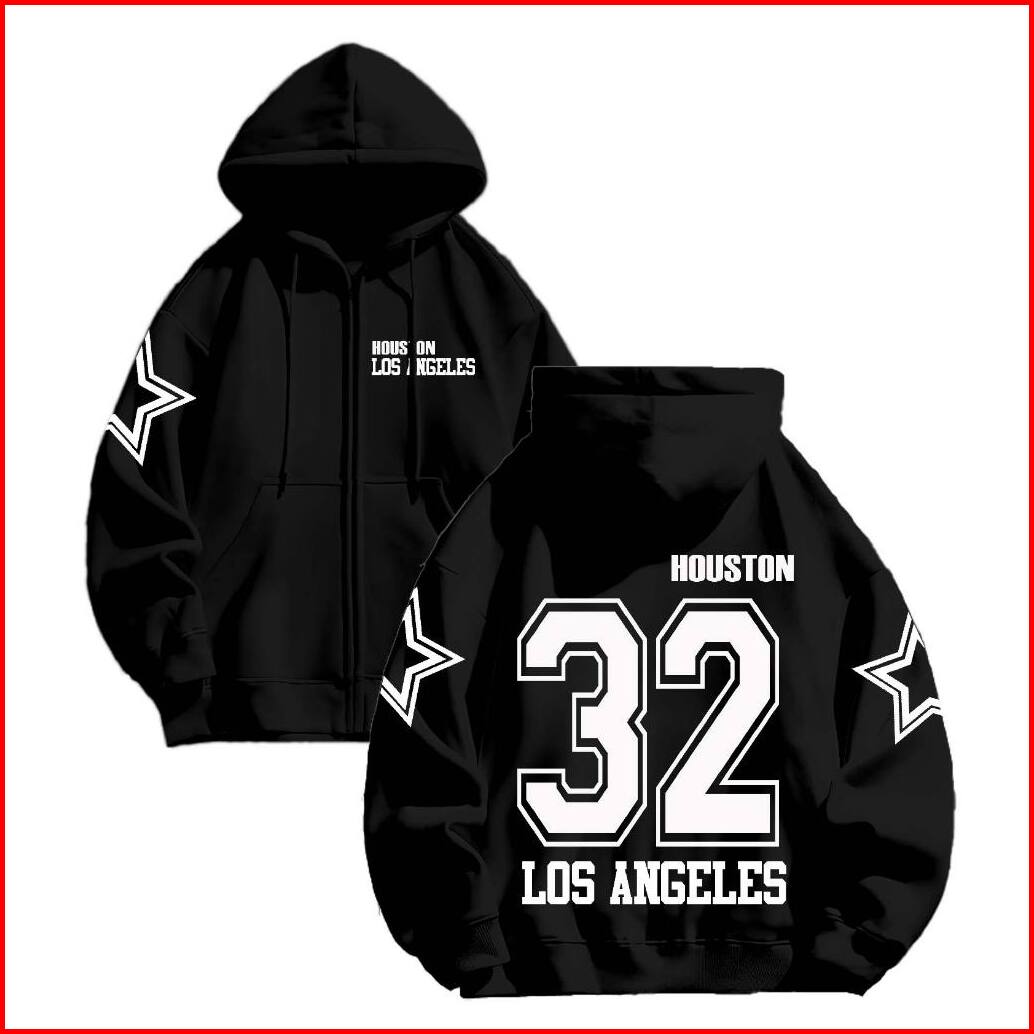 Bunz Hoodie Zipper Jaket Houston Los Angeles Sablon Dtf Size M-xxl Pria Wanita