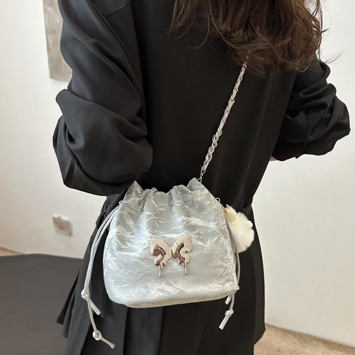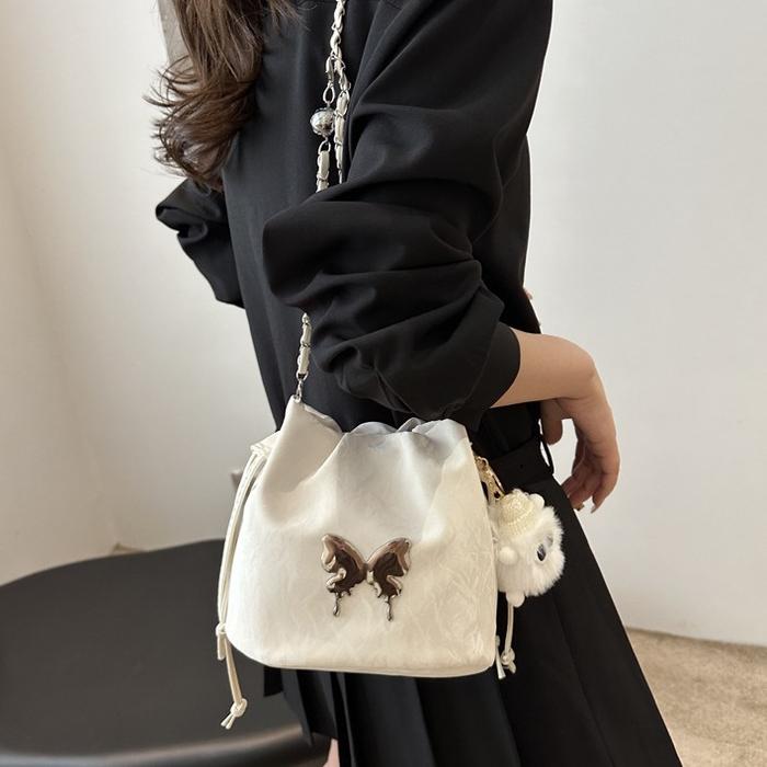 FREE GANTUNGAN TAS BAHU WANITA BUSUR BARU TAS SELEMPANG TEKSTUR BUTIRAN GLETSER TAS EMBER SERUT SANTAI FASHION SHOULDER BAG BUCKET BAG - HITAM