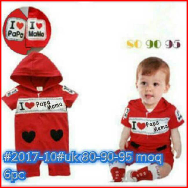 Romper Merah I Love Papa Mama Bodysuit Segiempat Jumpsuit Red