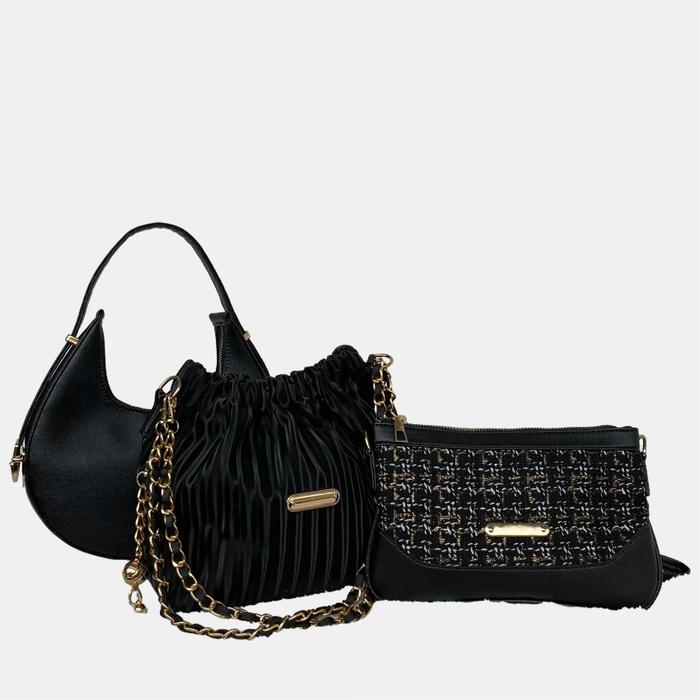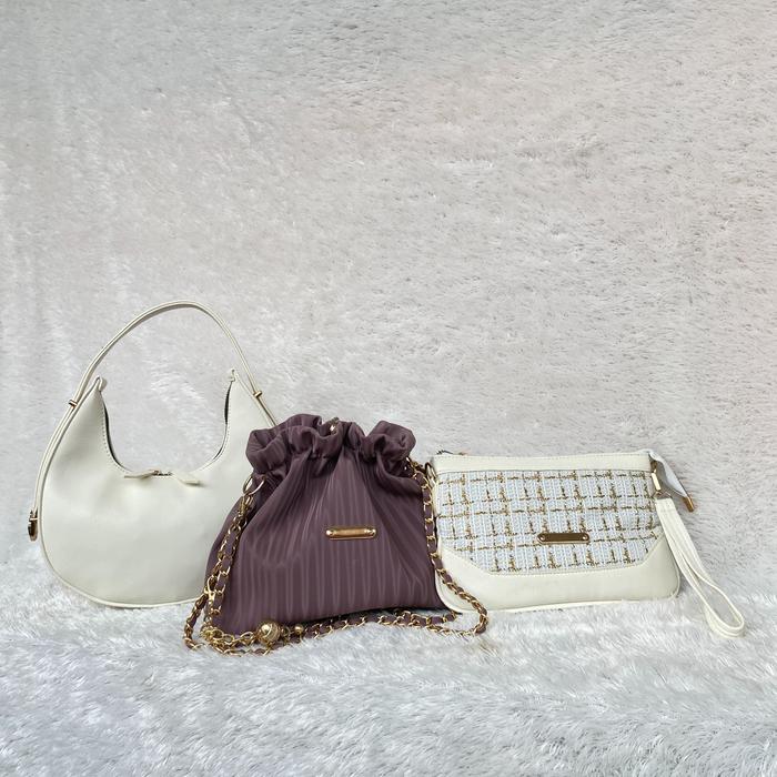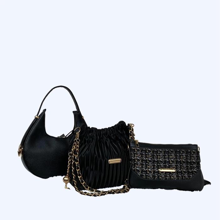 PAKET HEMAT 3PCS TAS SELEMPANG WANITA WULAN SUNNY DOMPET CEWEK TAS KETIAK WANITA - HITAM SEMUA