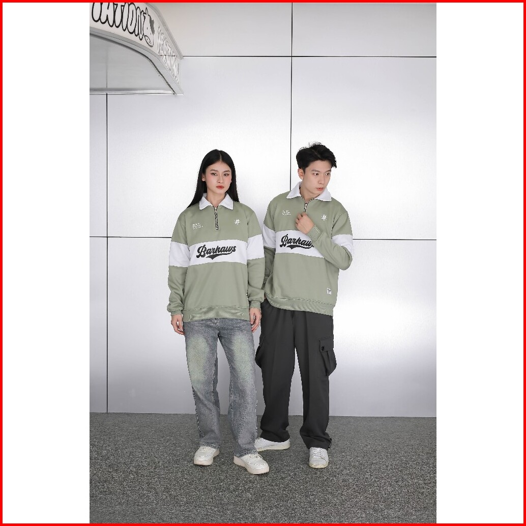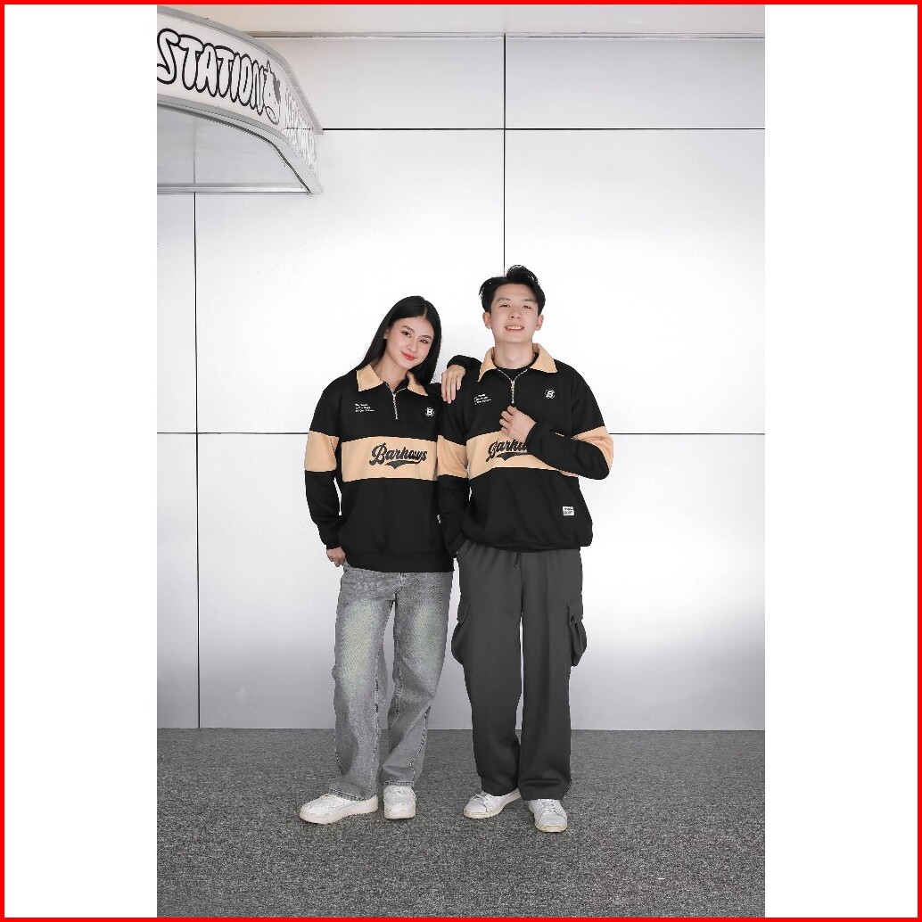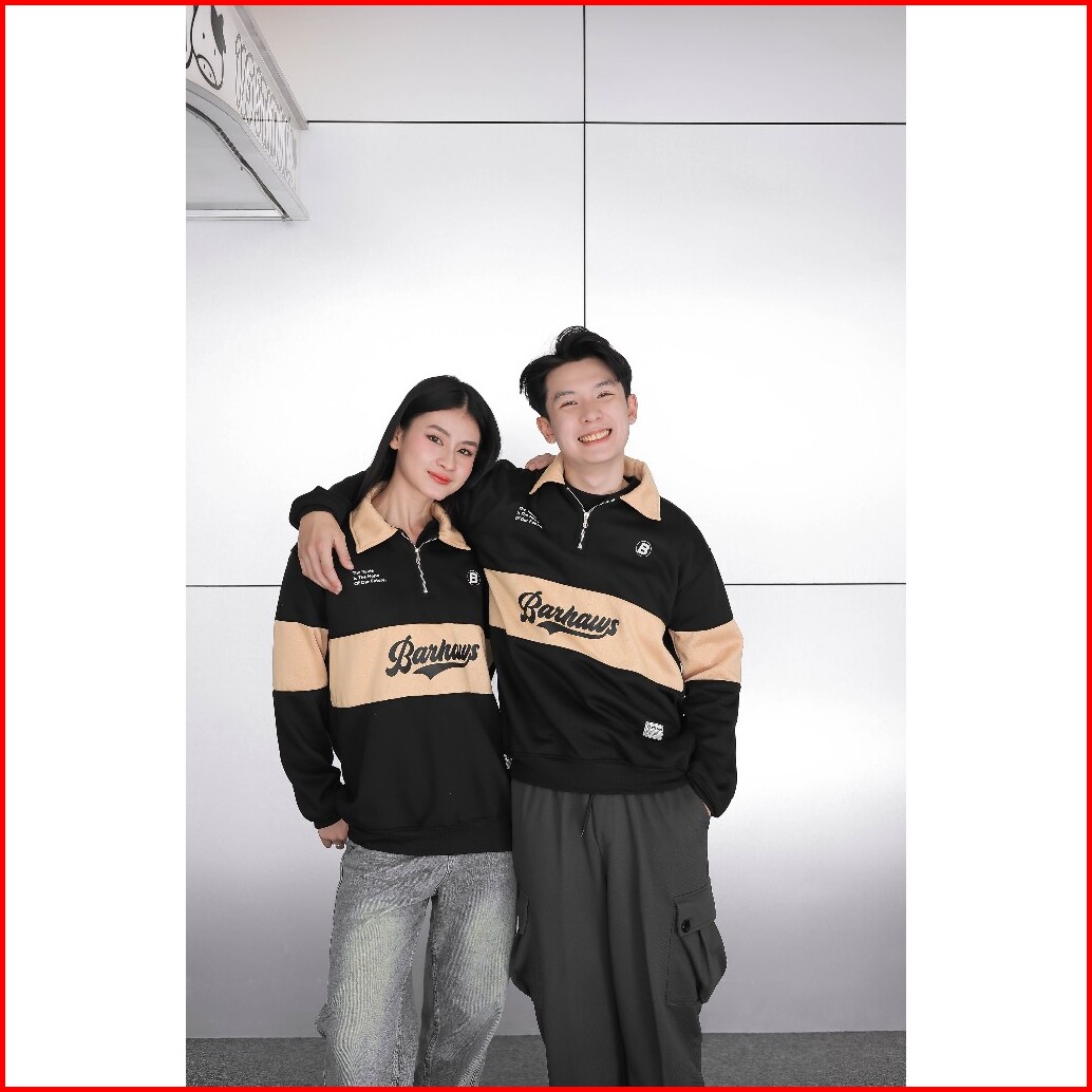 Barhaws - Sweater Half Zipper Kombinasi Halfzip Rugby Pria Wanita Casual Bahan Tebal