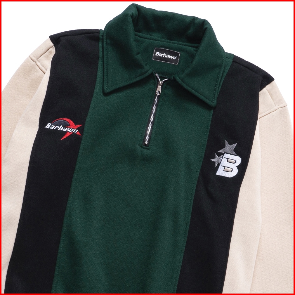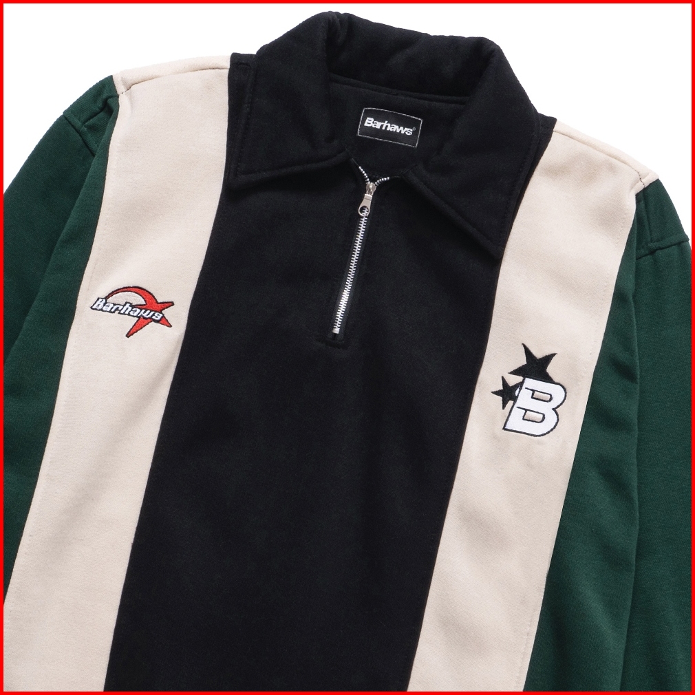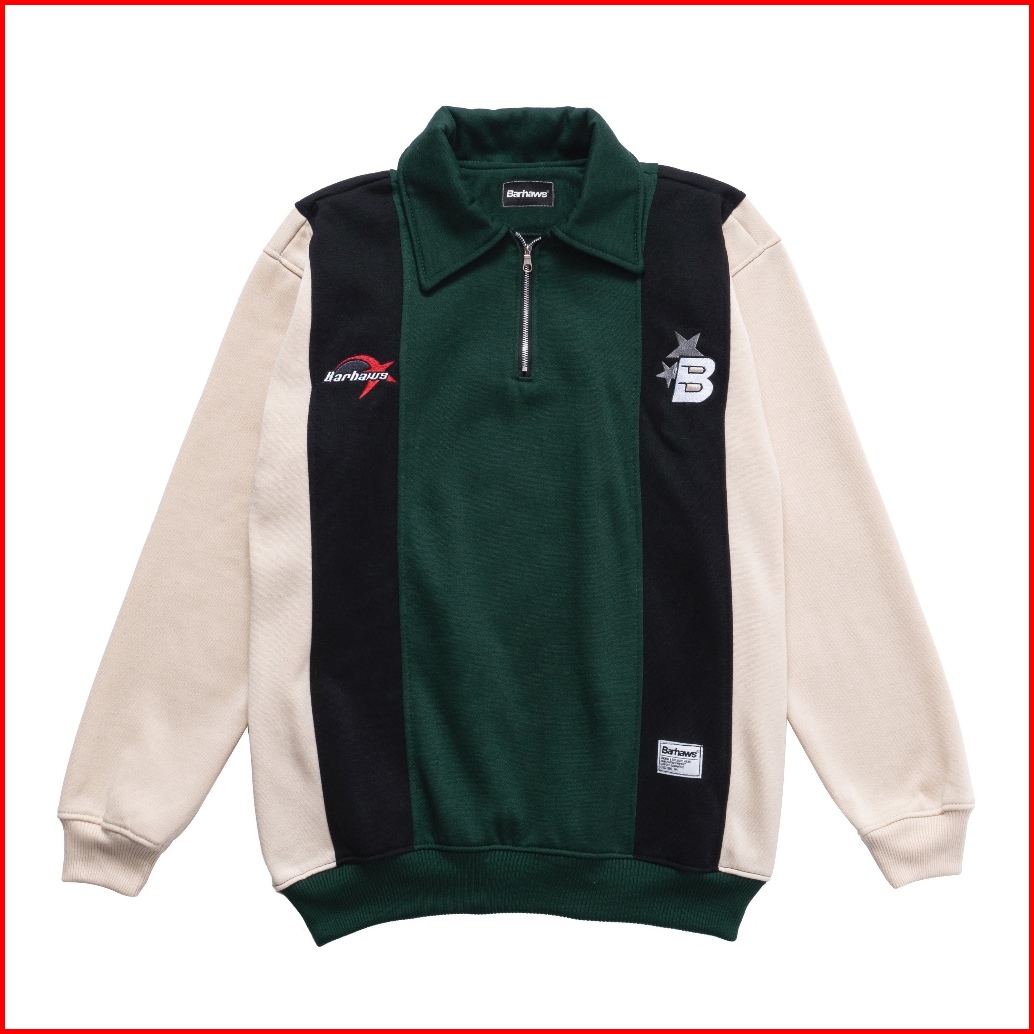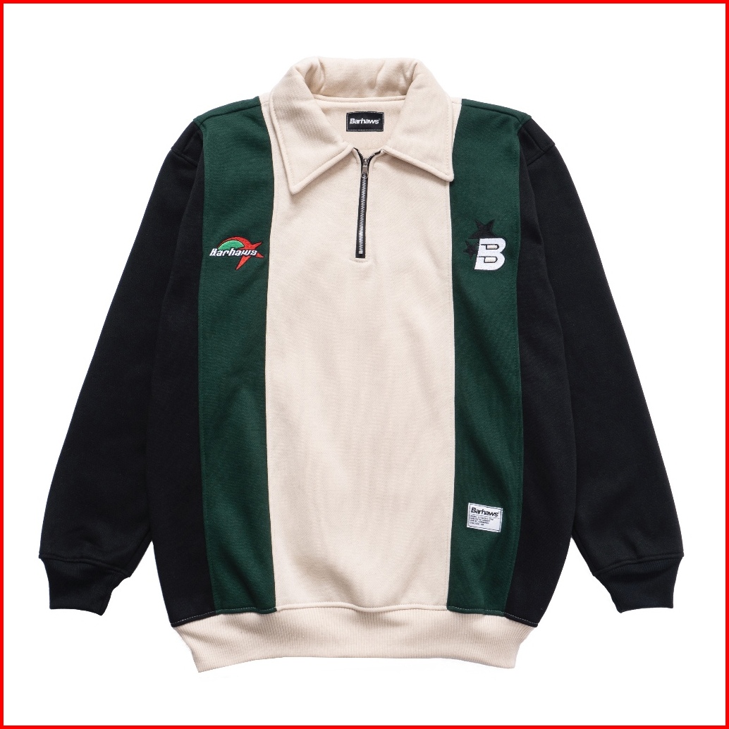 Barhaws - Sweater Halfzipper Rugby Kombinasi Warna Salur Motif Bordir Sweater Couple