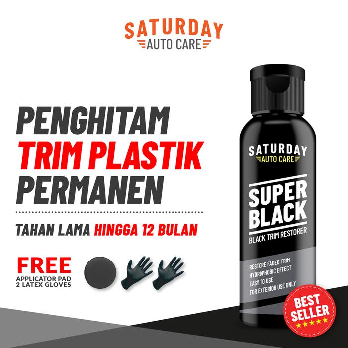 GRATIS ONGKIR ! PENGHITAM PLASTIK BODY MOTOR & MOBIL TRIM RESTORER PERMANEN SATURDAY AUTO CARE SUPER BLACK - 60 ML ORI