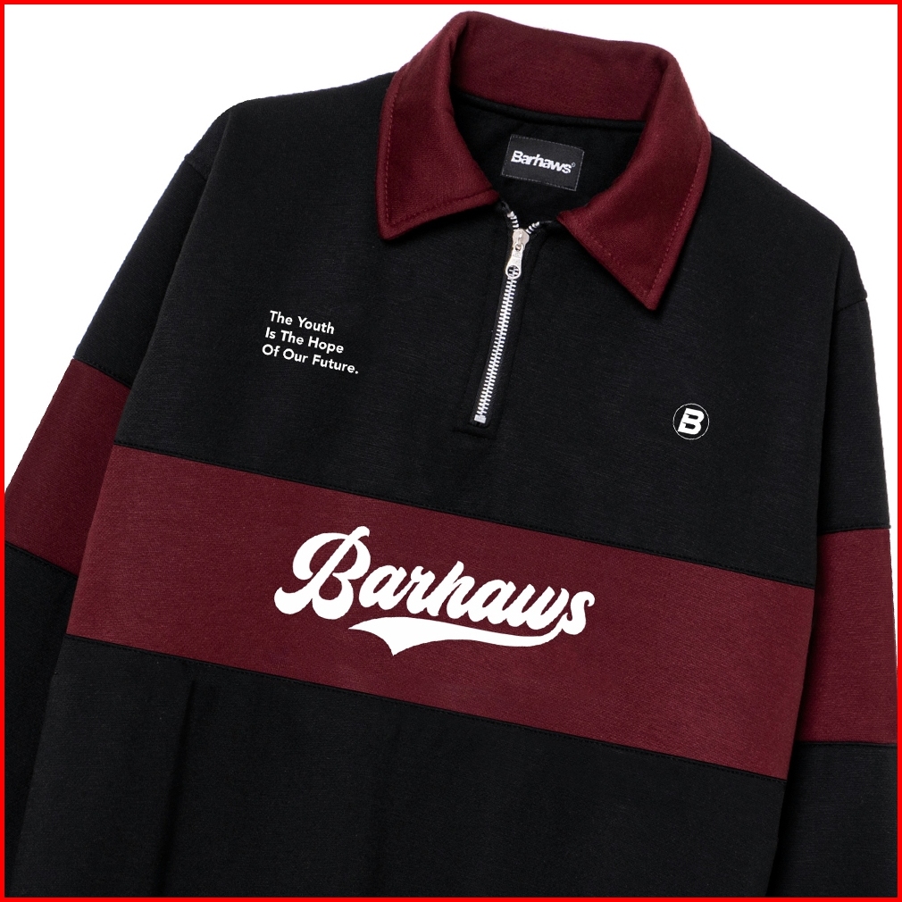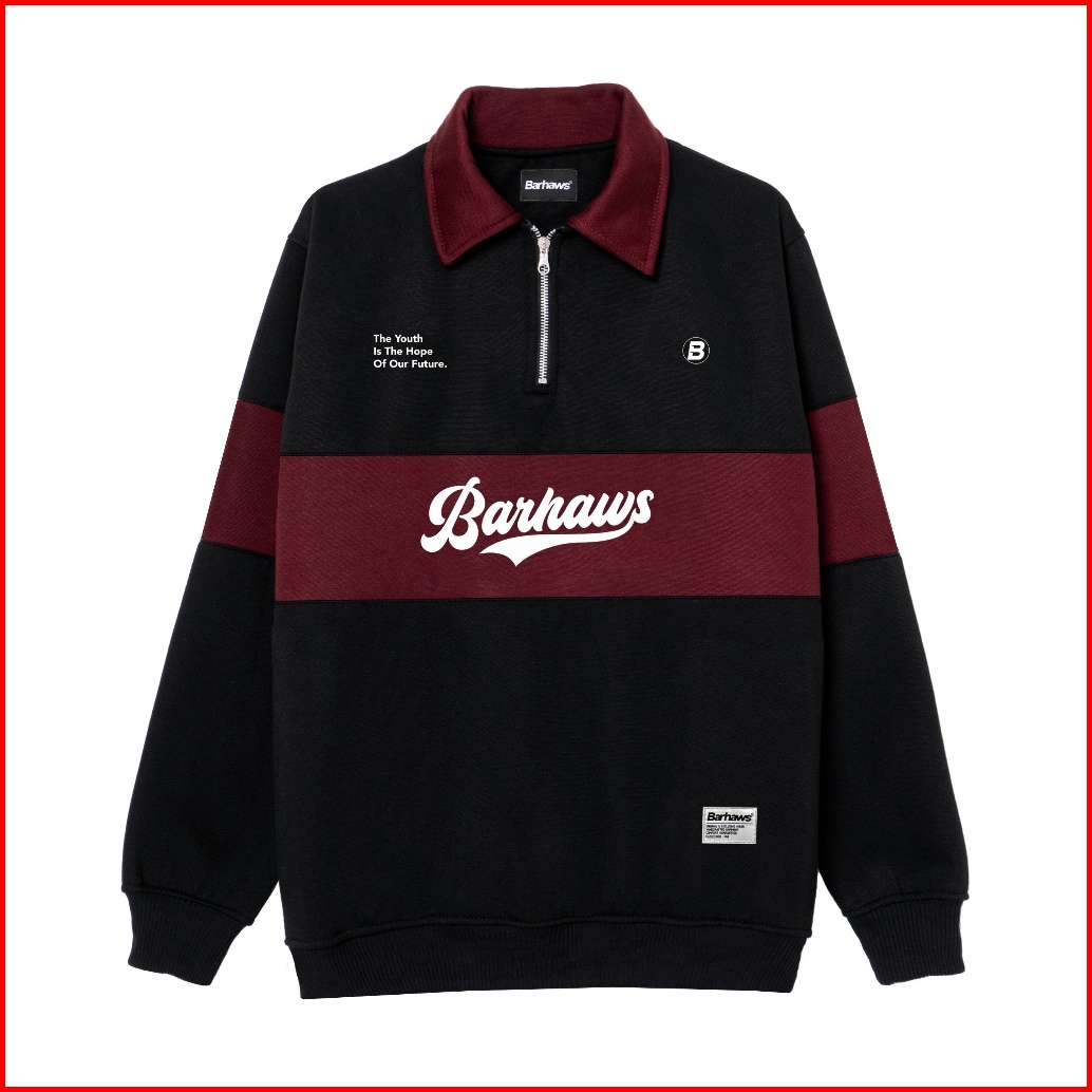 Barhaws - Sweater Half Zipper Rugby Hitam Kombinasi Maroon